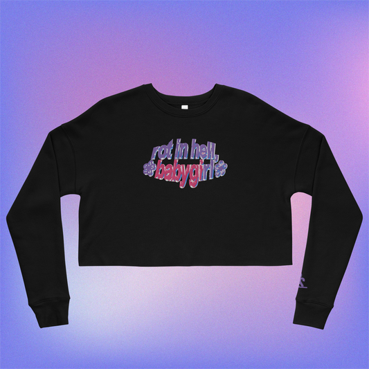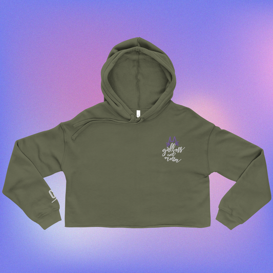 Girlboss Cat Mother Embroidered Crop Hoodie