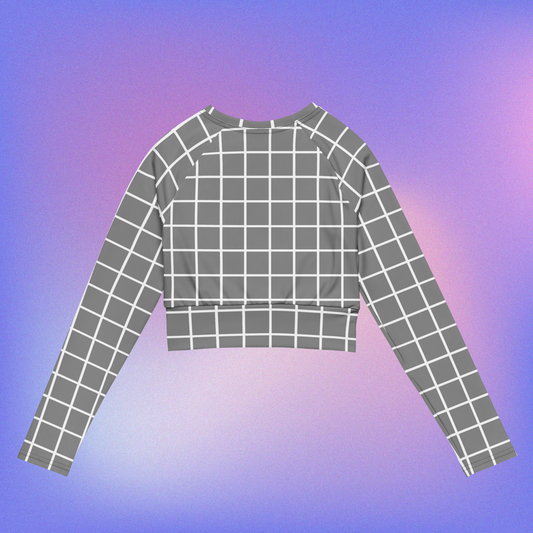 Gray Grid Long-Sleeve Crop Top