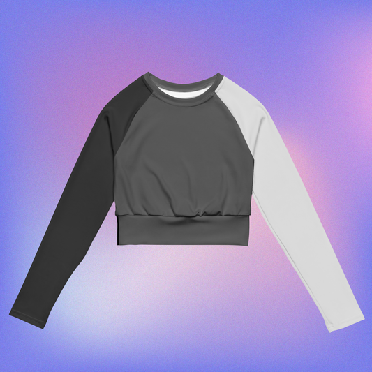 Grayscale Color Block Long-Sleeve Crop Top